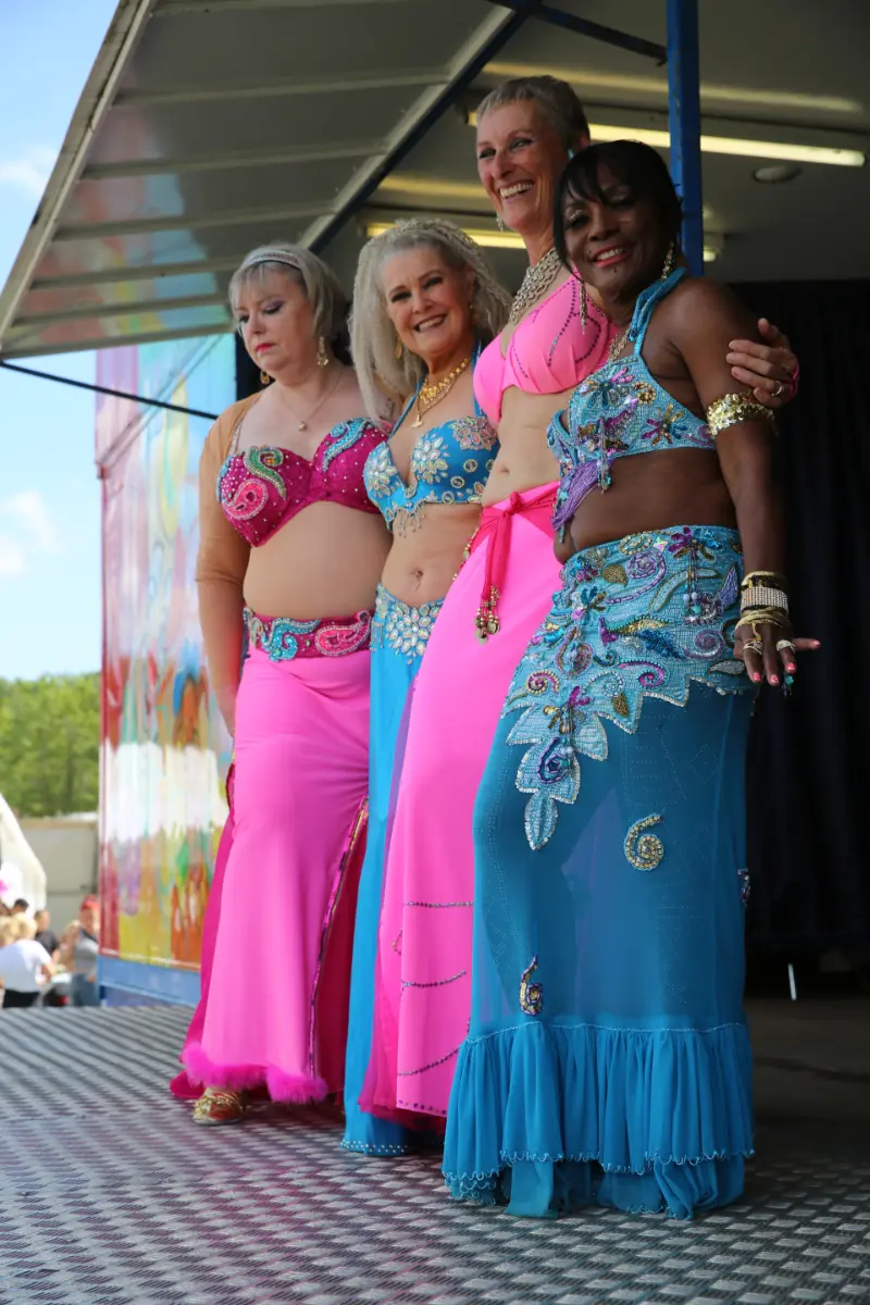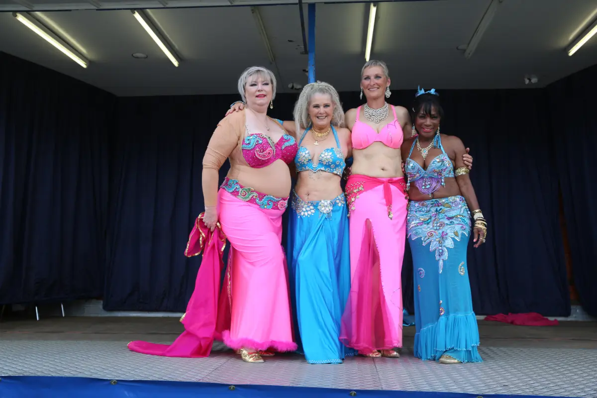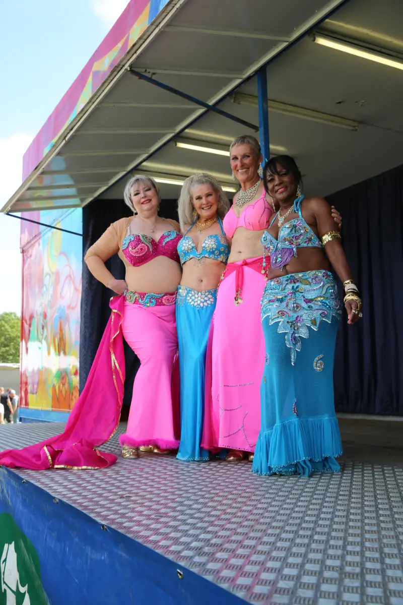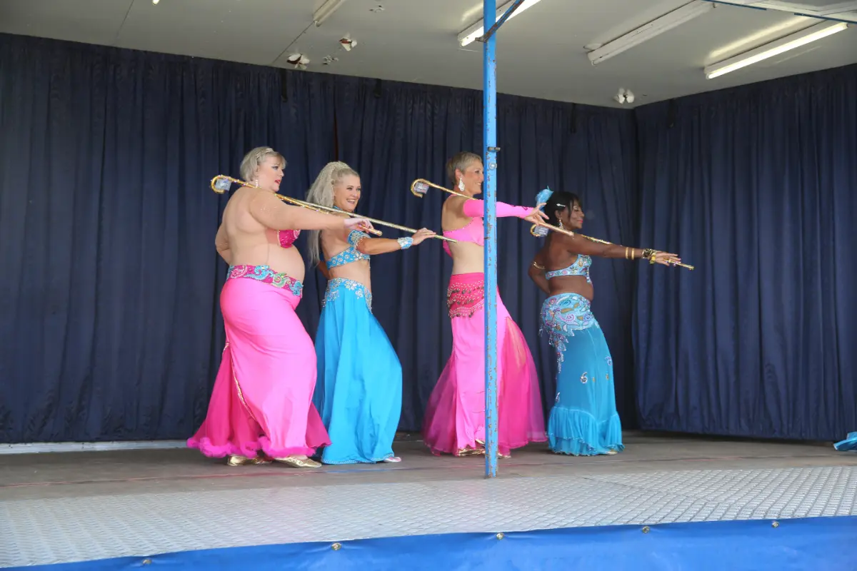 Mavedans Danmarks showhold, Ensemble Amira, repræsenteret ved Fahrida, Aziza, Ida og Queenie, ved Fredericia Heste- & Kræmmermarked. Foto.: Preben Wassmann