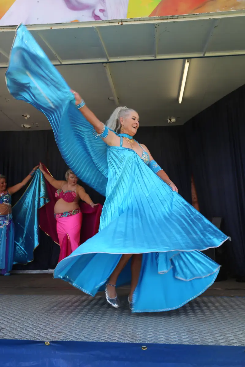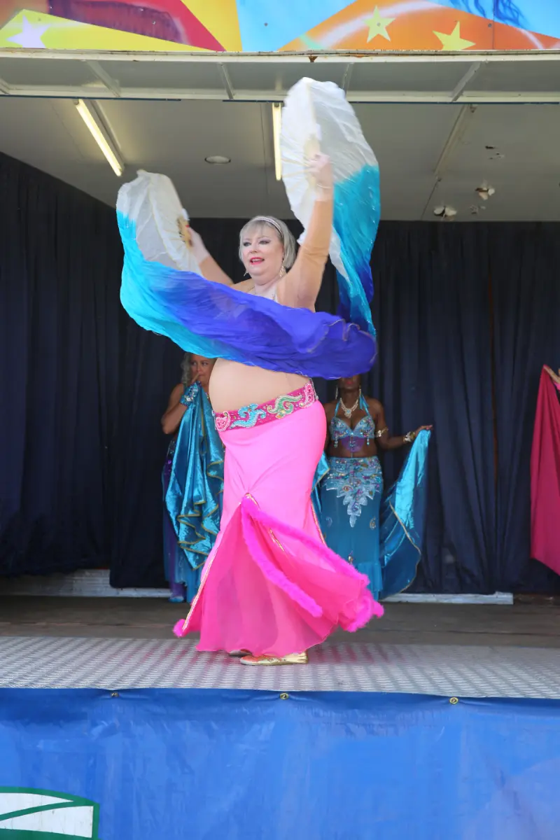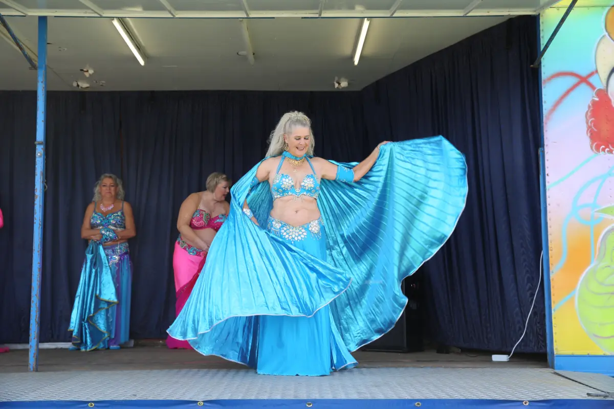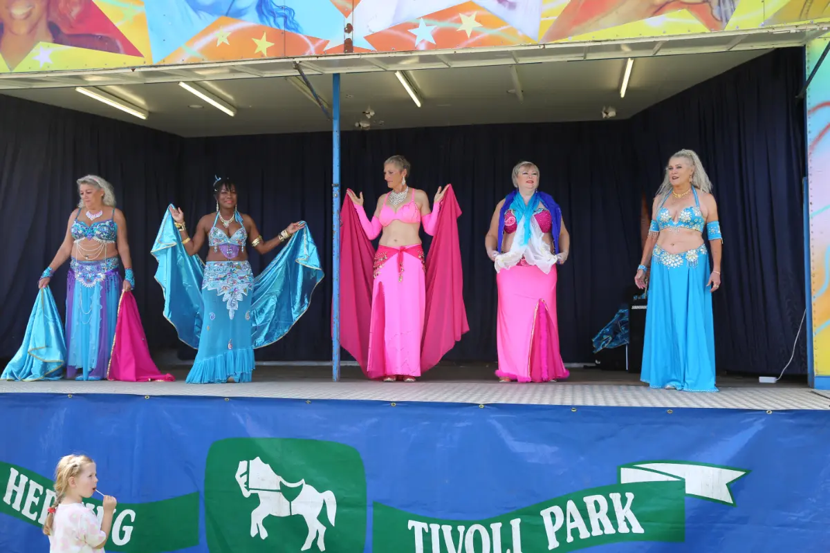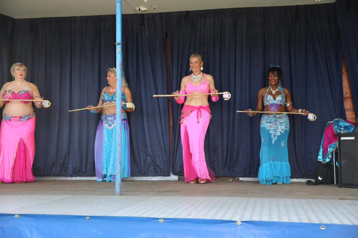 Mavedans Danmarks showhold, Ensemble Amira, repræsenteret ved Fahrida, Aziza, Ida og Queenie, ved Fredericia Heste- & Kræmmermarked. Foto.: Preben Wassmann