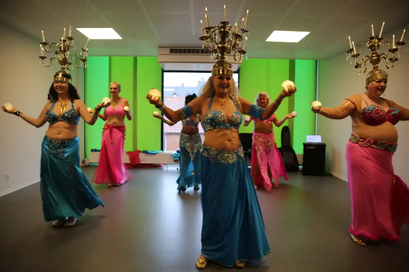 Den 27. august bragte Vera, Queenie, Aziza og Fahrida farver og orientalsk dans til et plejehjem i Horsens. Besøget var en dybt personlig hyldest til moderen efter vores mangeårige fotograf, Claus Petersen (Clapet). Det blev et rørende gensyn, hvor dansen vækkede minder og bragte smil og tårer frem hos alle.