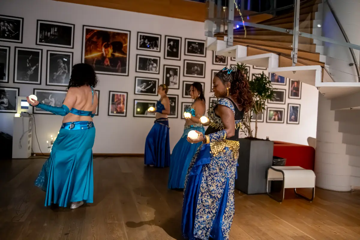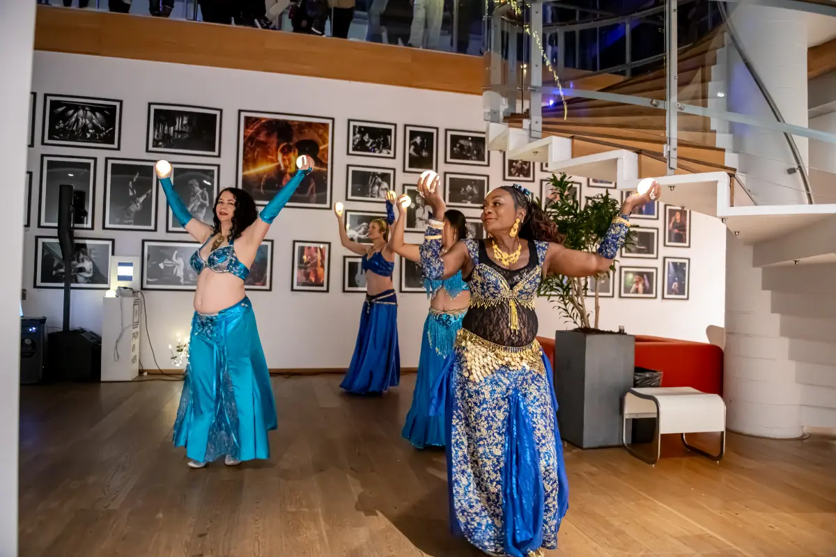 Herfra åbnede aftenen sig som et levende farvespil, hvor publikum kunne følge dansen helt tæt på. Dette galleri samler nogle af de øjeblikke, hvor lys, bevægelse og orientalske rytmer smeltede sammen i en eventyrlig helhedsoplevelse