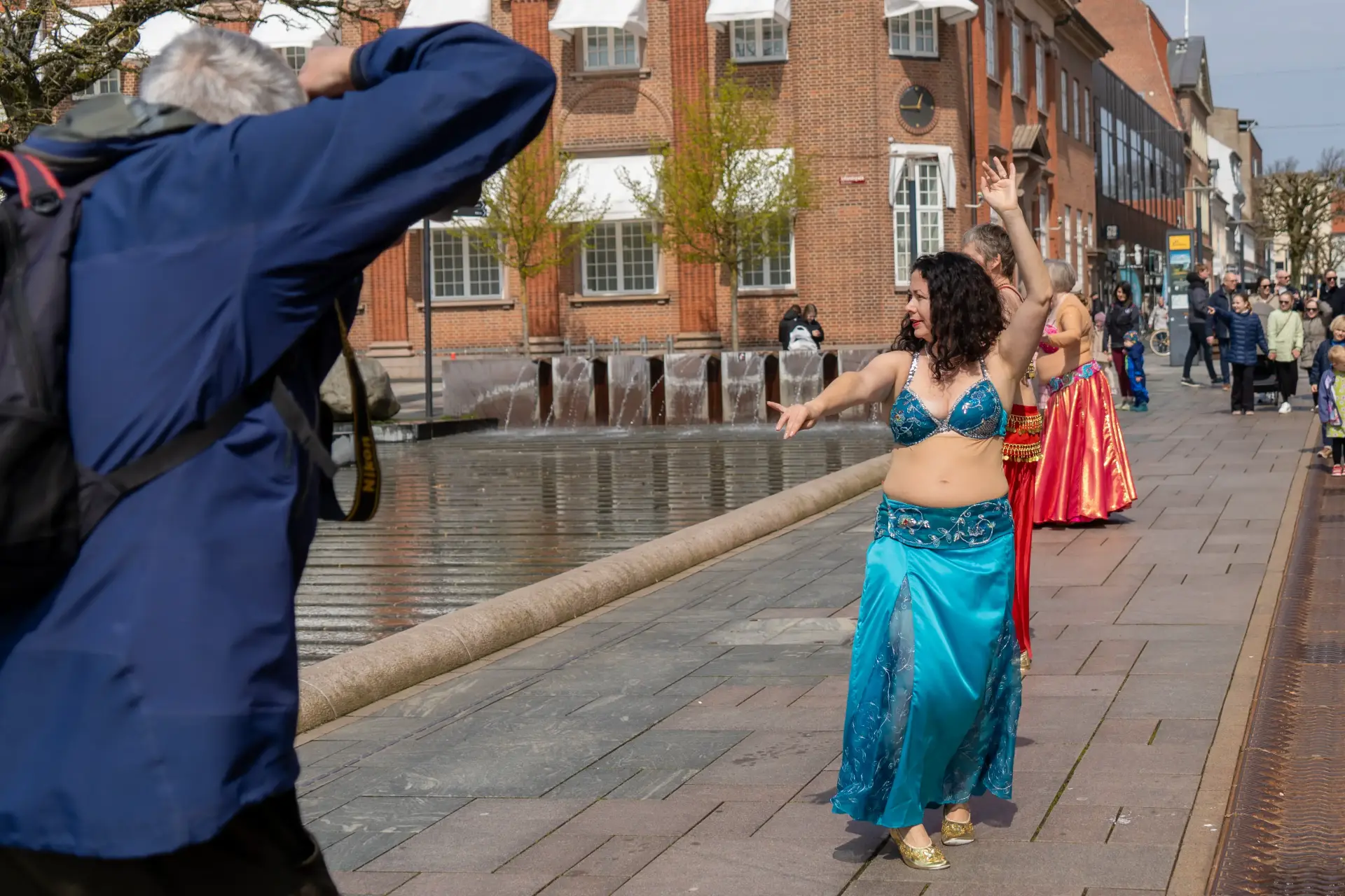 Fotograferne fra Fredericia og mavedanserne fra Ensemble Amira på Fredericia gågade Foto.: Klavs Lind 2024